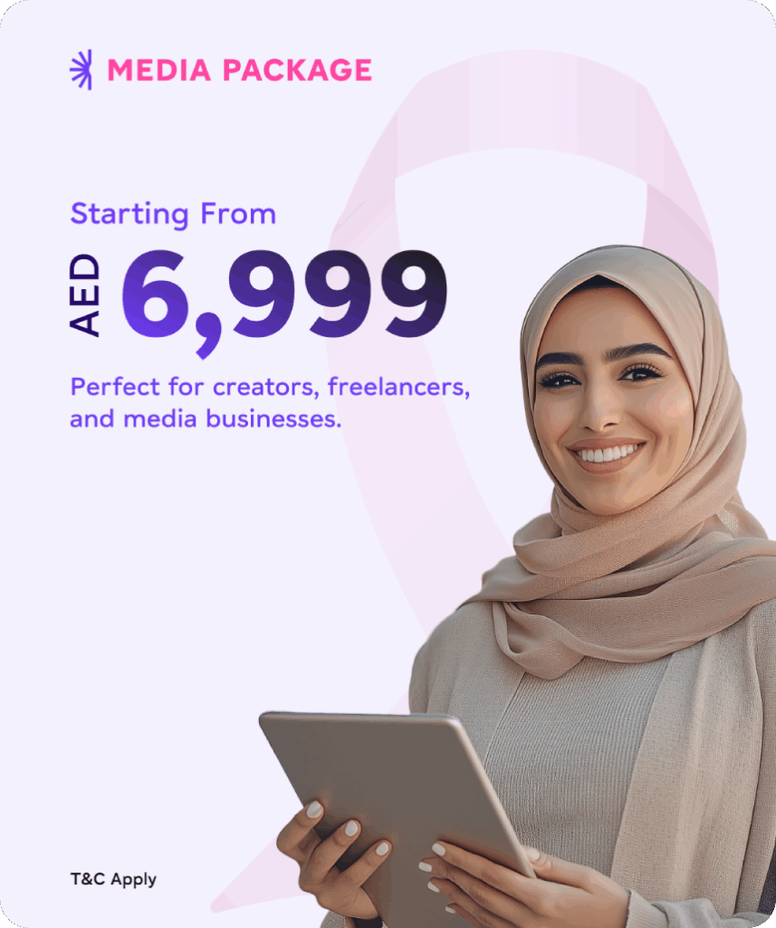 As part of Pink Month, Shams Free Zone is proud to support women entrepreneurs with an exclusive Media License Package at a special price of AED 6,999.